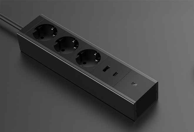 This is a modular safety power strip. By combining different modules, the modular safety power strip can adapt to the configuration requirements of different scenarios, the distance between modules can also be adjusted to adapt to different adapters, and the versatility of the modules can meet the use of several power strips in combination with each other, so that the indoor power strips can all be used to the best of their ability. Safety is also a growing concern for consumers and this product reduces the risk of electric shock and protects babies and children.